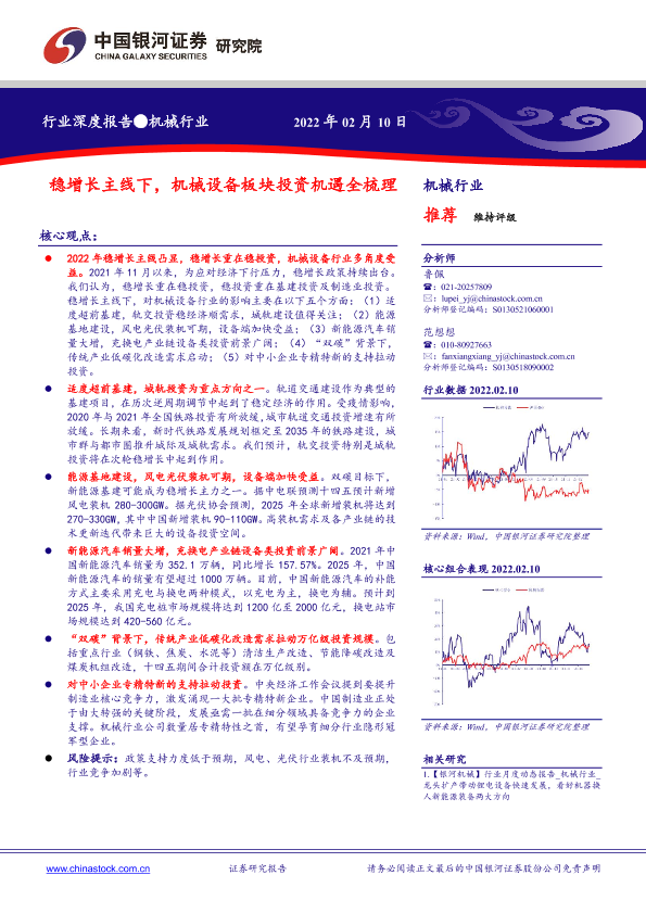 【银河证券】【20220210】机械行业深度报告:稳增长主线下,机械设备板块投资机遇全梳理-32页