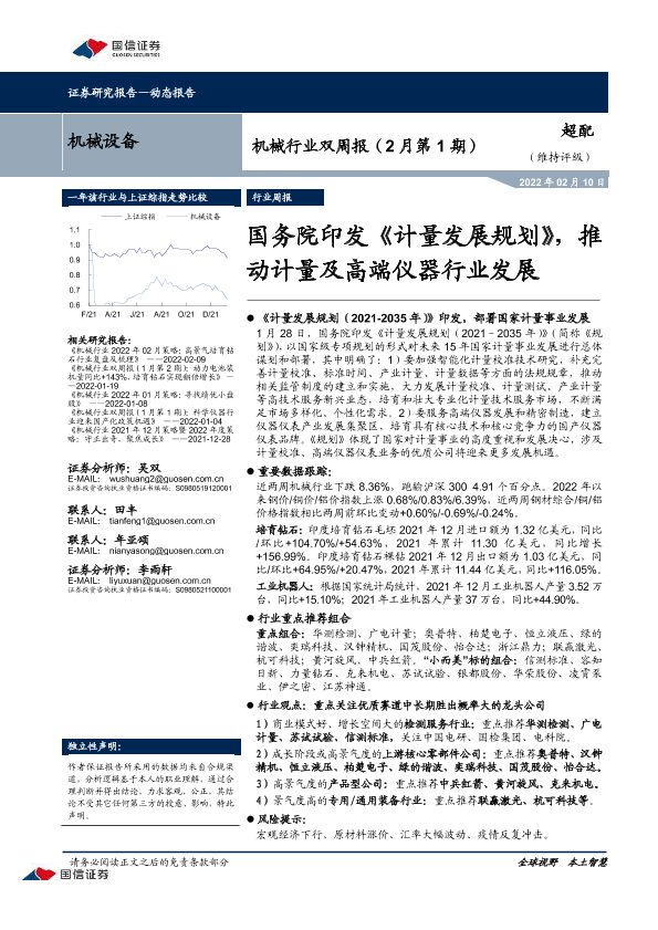 【国信证券】【20220210】机械行业双周报(2月第1期):国务院印发《计量发展规划》,推动计量及高端仪器行业发展-24页
