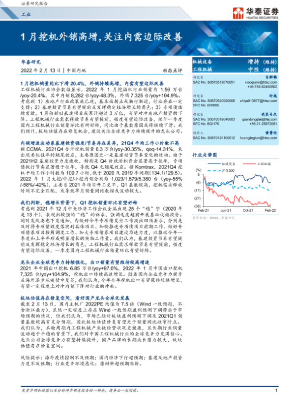 【华泰证券】【20220213】1月挖机外销高增,关注内需边际改善-7页