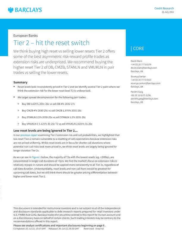 【Barclays】【20220726】European Banks Tier 2 – hit the reset switch-13页
