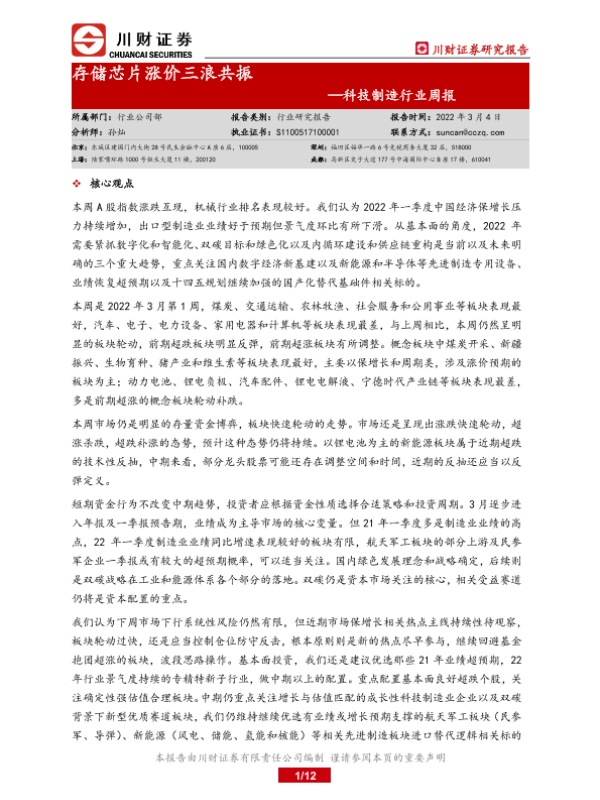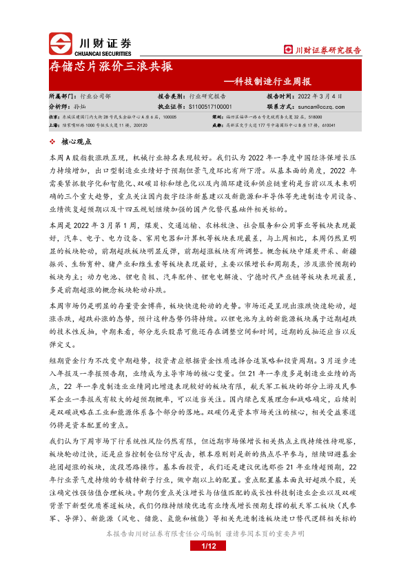 【川财证券】【20220304】科技制造行业周报:存储芯片涨价三浪共振-12页