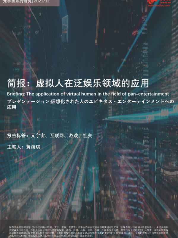 【头豹研究院】【20220304】简报:虚拟人在泛娱乐领域的应用-13页