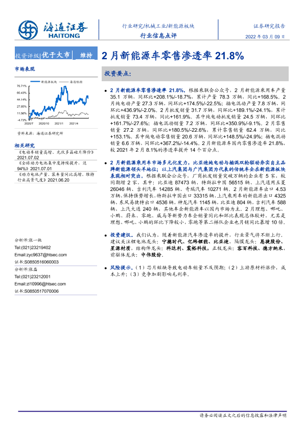 【海通证券】【20220309】20220309-海通证券-新能源板块行业信息点评:2月新能源车零售渗透率21.8%-3页