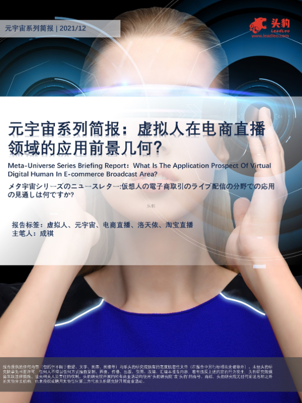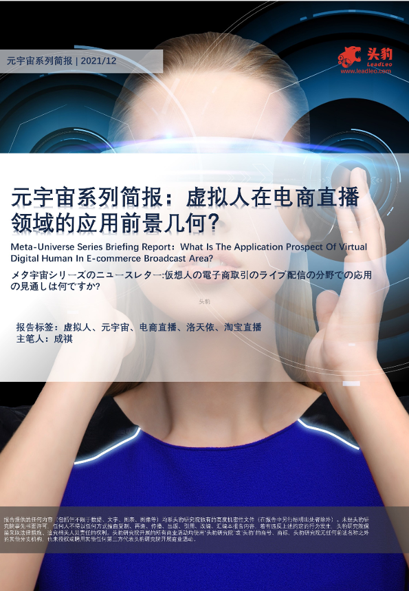 【头豹研究院】【20220308】元宇宙系列简报:虚拟人在电商直播领域的应用前景几何?-11页