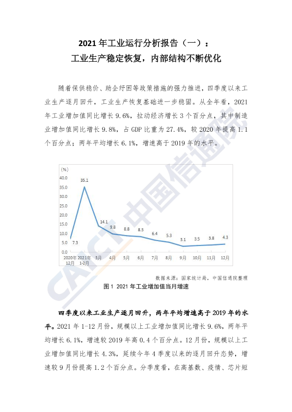 【中国信通院】【20220311】2021年工业运行分析报告(一):工业生产稳定恢复,内部结构不断优化-7页