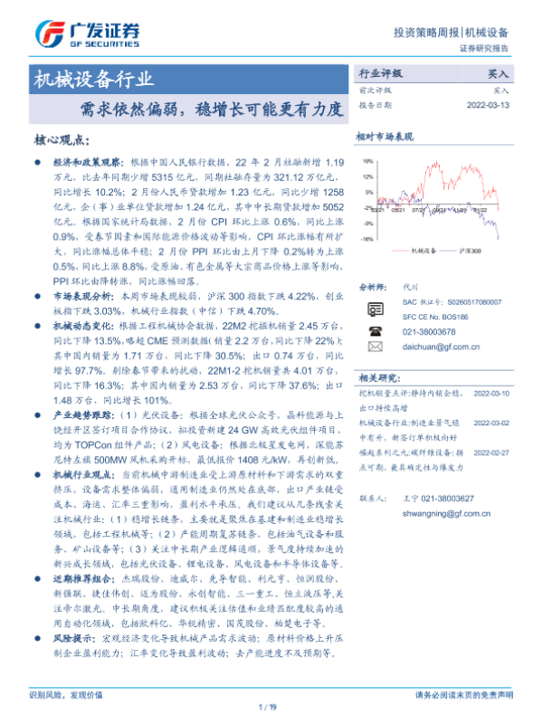 【广发证券】【20220313】20220313-广发证券-机械设备行业投资策略周报:需求依然偏弱,稳增长可能更有力度-19页