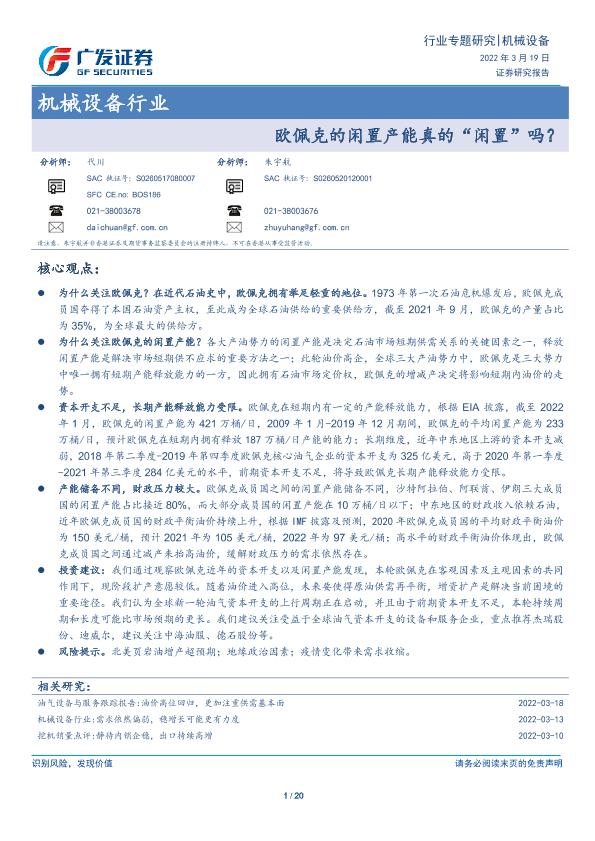【广发证券】【20220319】20220319-广发证券-机械设备行业专题研究:欧佩克的闲置产能真的“闲置”吗?-20页