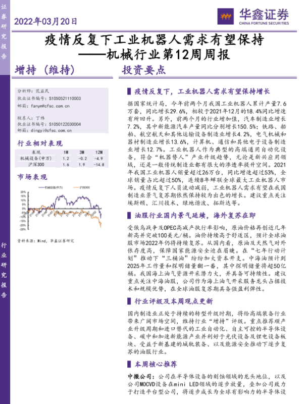 【华鑫证券】【20220320】疫情反复下工业机器人需求有望保持——机械行业第12周周报-24页