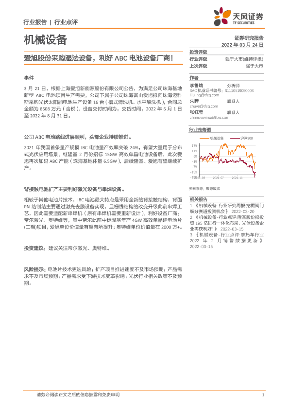 【天风证券】【20220324】机械设备行业点评:爱旭股份采购湿法设备,利好ABC电池设备厂商!-2页