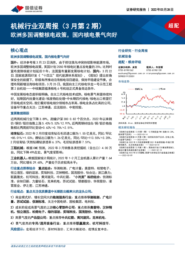 【国信证券】【20220328】机械行业双周报(3月第2期):欧洲多国调整核电政策,国内核电景气向好-24页