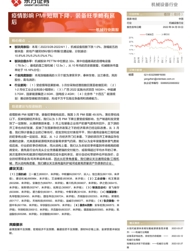【东方证券】【20220403】20220403-东方证券-机械行业周报:疫情影响PMI短期下降,装备旺季略有延后-30页