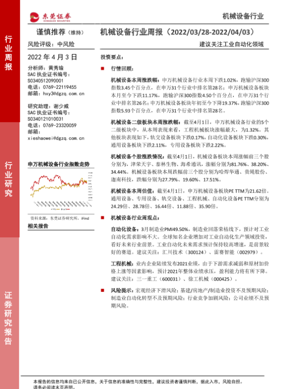 【东莞证券】【20220403】20220403-东莞证券-机械设备行业周报:建议关注工业自动化领域-11页