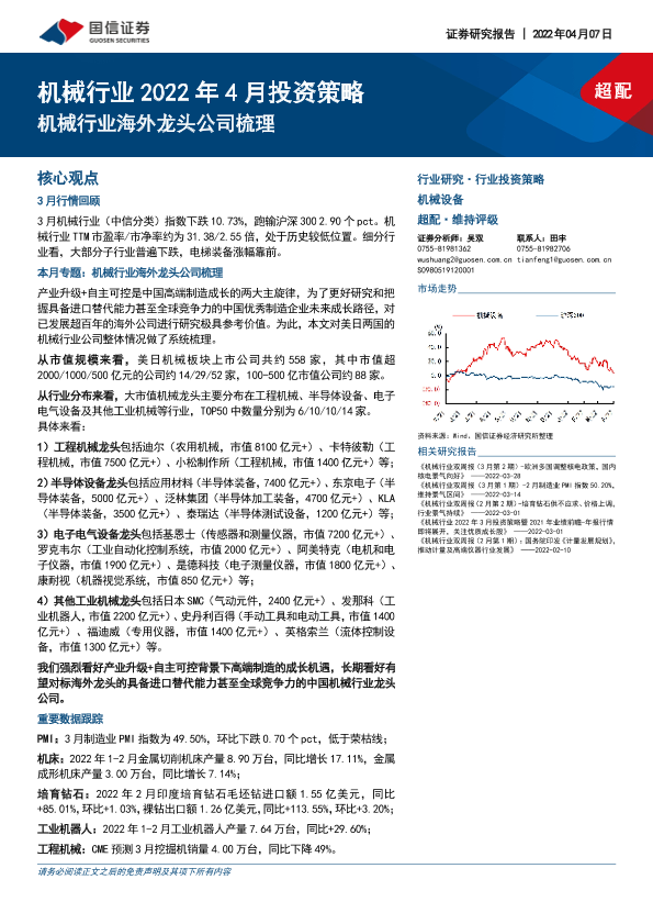 【国信证券】【20220407】机械行业2022年4月投资策略:机械行业海外龙头公司梳理-29页