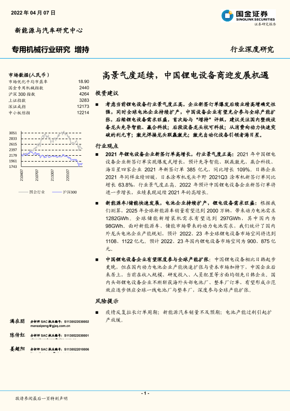 【国金证券】【20220407】专用机械行业深度研究:高景气度延续,中国锂电设备商迎发展机遇-16页