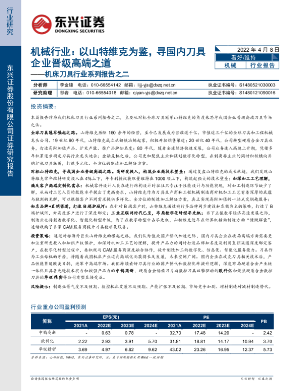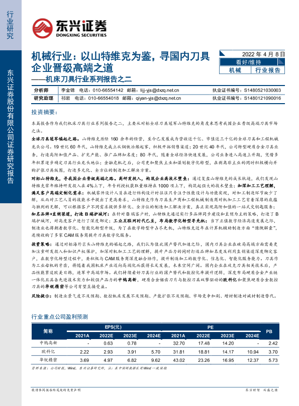 【东兴证券】【20220408】机械行业:以山特维克为鉴,寻国内刀具企业晋级高端之道-31页