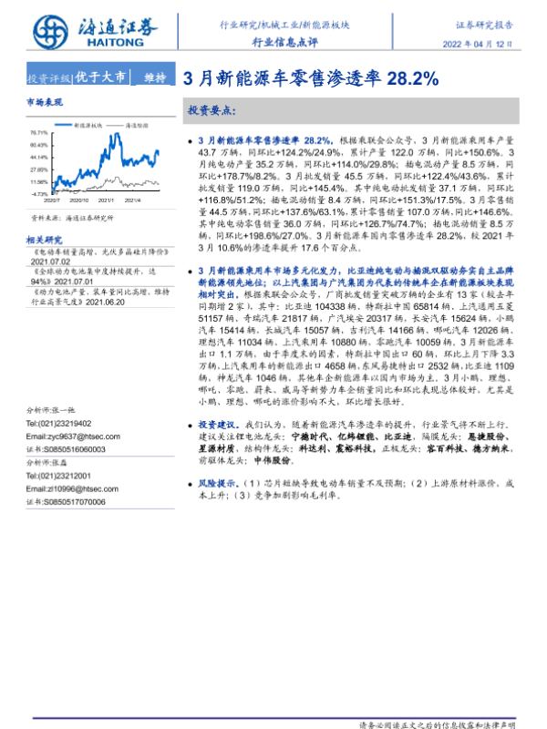 【海通证券】【20220412】20220412-海通证券-机械工业行业信息点评:3月新能源车零售渗透率28.2%-3页