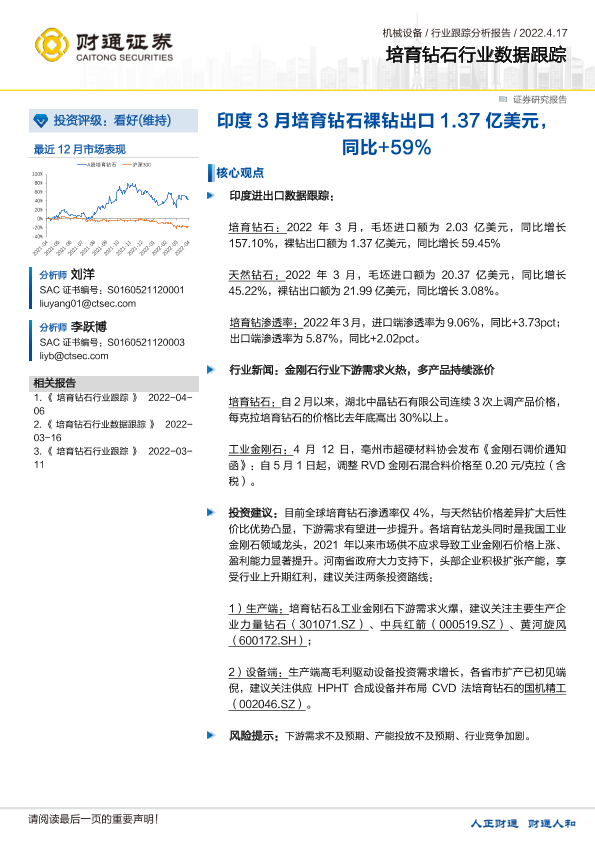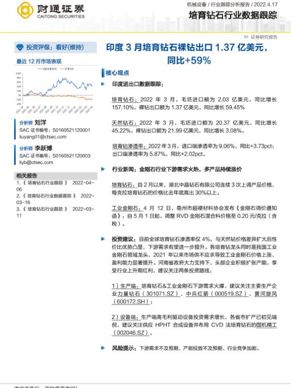 【财通证券】【20220417】20220417-财通证券-培育钻石行业数据跟踪:印度3月培育钻石裸钻出口1.37亿美元,同比+59%-7页