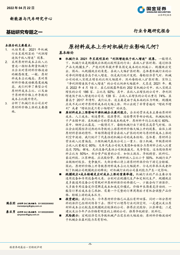 【国金证券】【20220422】基础研究专题之一:原材料成本上升对机械行业影响几何?-8页