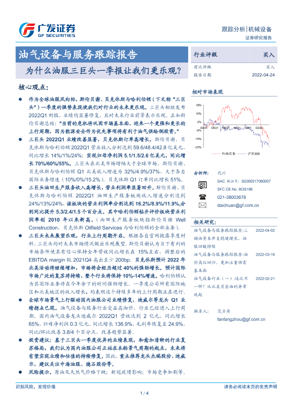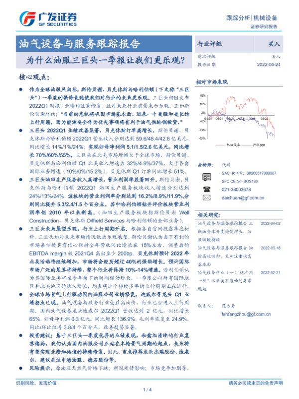 【广发证券】【20220424】油气设备与服务跟踪报告:为什么油服三巨头一季报让我们更乐观?-4页