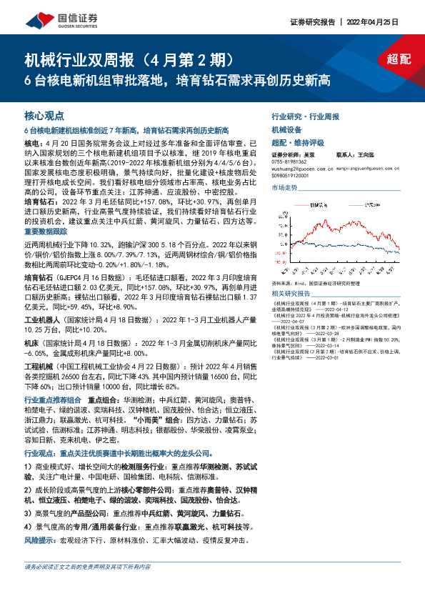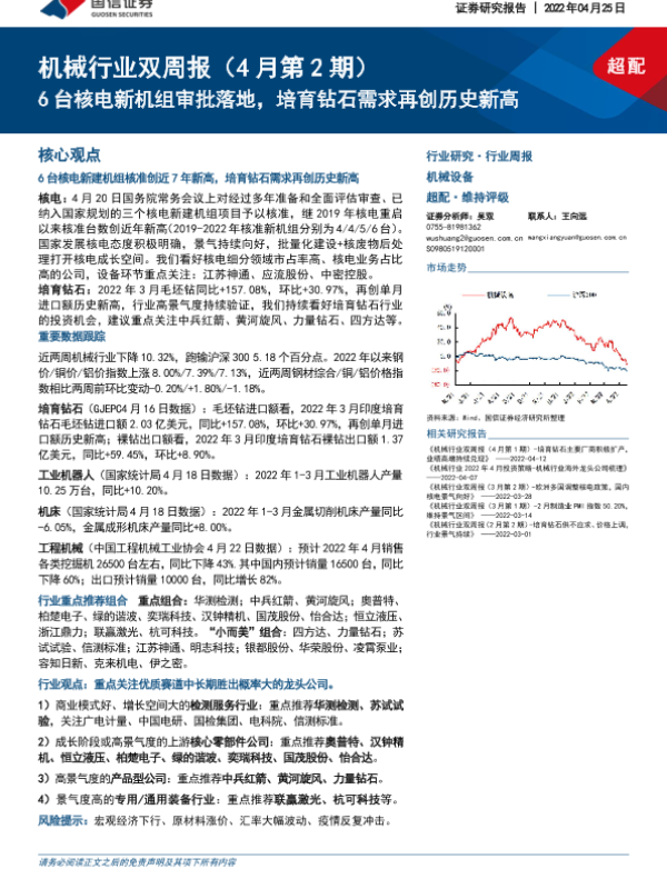 【国信证券】【20220425】机械行业双周报(4月第2期):6台核电新机组审批落地,培育钻石需求再创历史新高-25页
