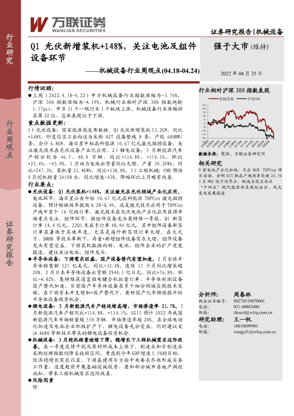 【万联证券】【20220425】Q1光伏新增装机+148%,关注电池及组件设备环节-15页