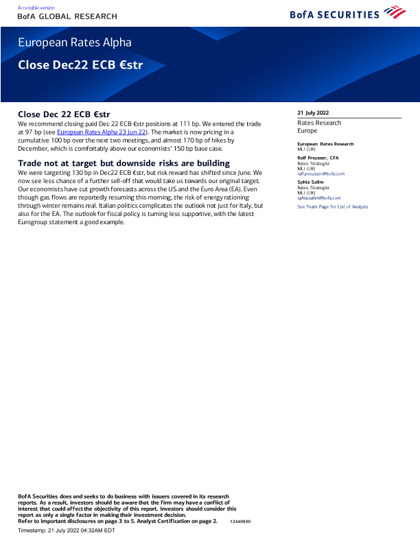 【BofA Securities】【20220721】BOFA-European Rates Alpha Close Dec22 ECB €str-6页