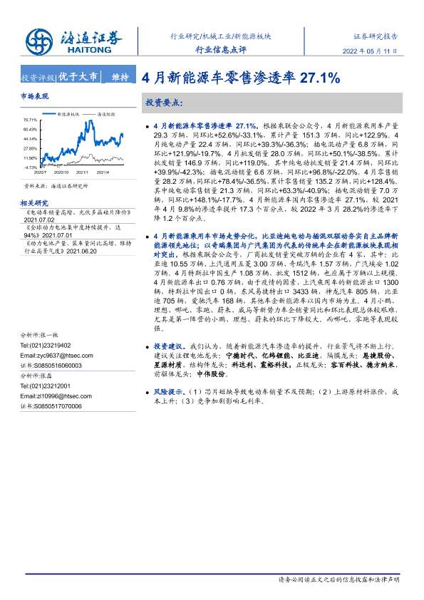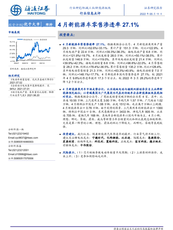 【海通证券】【20220511】20220511-海通证券-机械工业行业信息点评:4月新能源车零售渗透率27.1%-3页