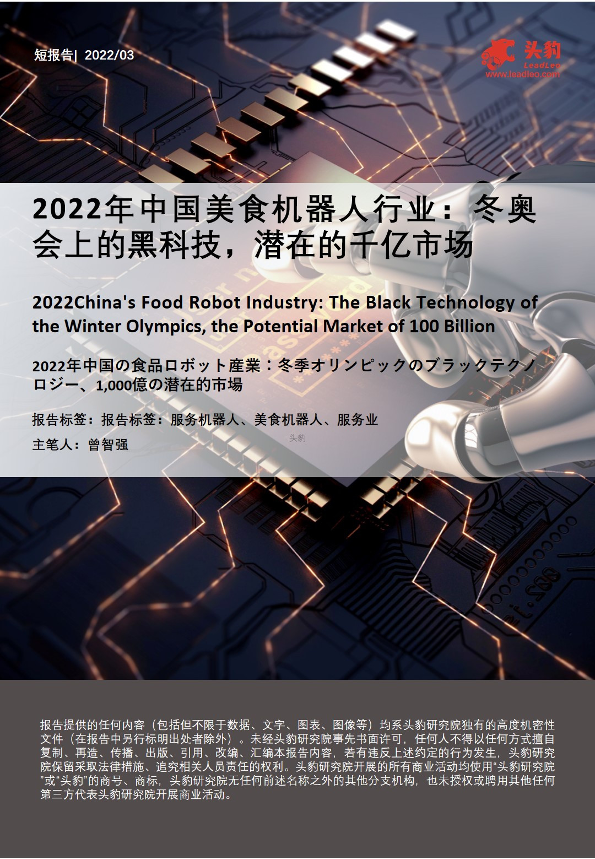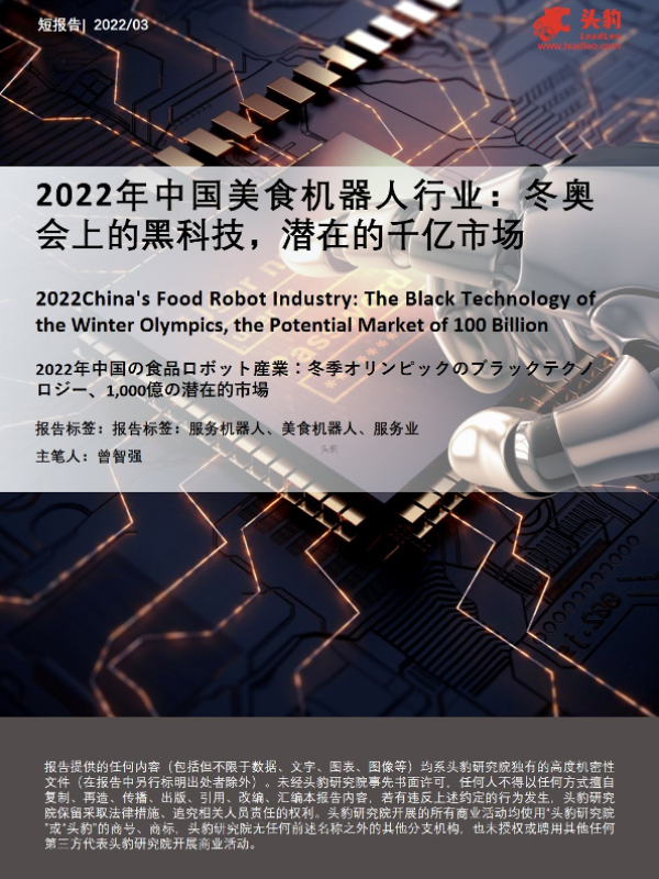 【头豹研究院】【20220510】2022年中国美食机器人行业:冬奥会上的黑科技,潜在的千亿市场-24页