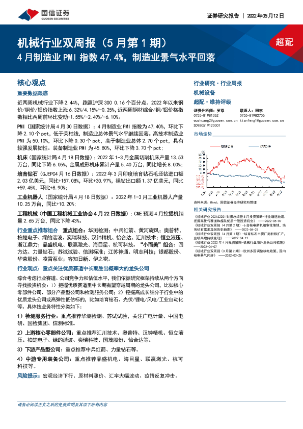 【国信证券】【20220512】20220512-国信证券-机械行业双周报(5月第1期):4月制造业PMI指数47.4%,制造业景气水平回落-24页