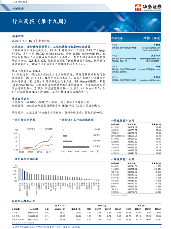 【华泰证券】【20220515】20220515-华泰证券-机械设备行业周报(第十九周)-17页