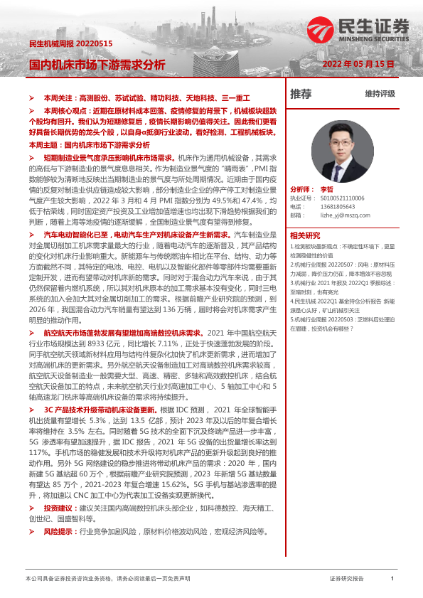 【民生证券】【20220515】国内机床市场下游需求分析-14页