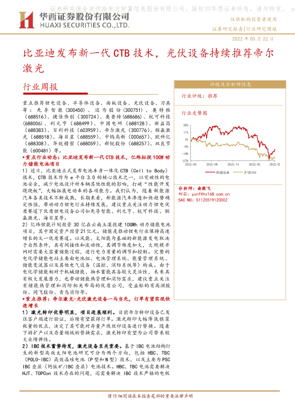 【华西证券】【20220522】20220522-华西证券-机械行业周报:比亚迪发布新一代CTB技术,光伏设备持续推荐帝尔激光-21页