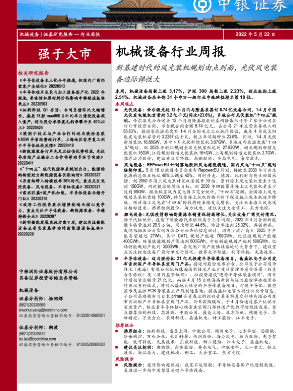 【中银证券】【20220522】20220522-中银证券-机械设备行业周报:新基建时代的风光装机规划由点到面,光伏风电装备边际弹性大-17页