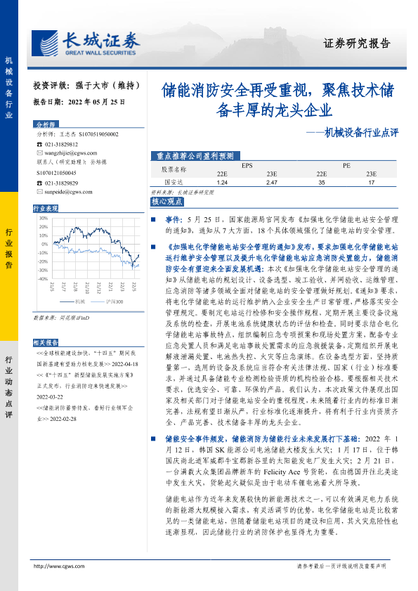 【长城证券】【20220525】机械设备行业点评:储能消防安全再受重视,聚焦技术储备丰厚的龙头企业-3页