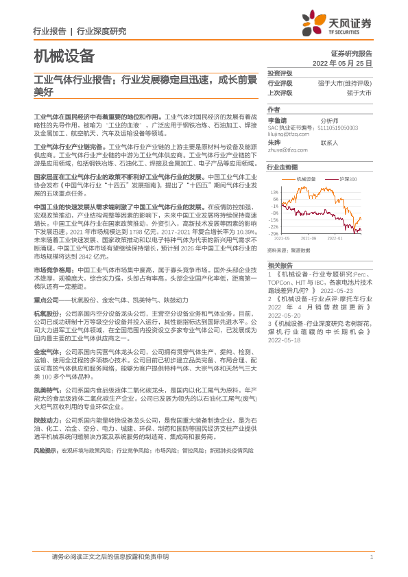 【天风证券】【20220525】20220525-天风证券-机械设备工业气体行业报告:行业发展稳定且迅速,成长前景美好-29页