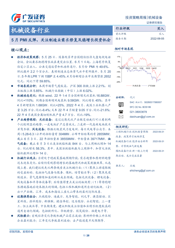 【广发证券】【20220605】20220605-广发证券-机械设备行业投资策略周报:5月PMI反弹,关注制造业需求修复及稳增长投资机会-26页
