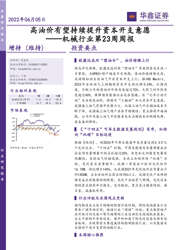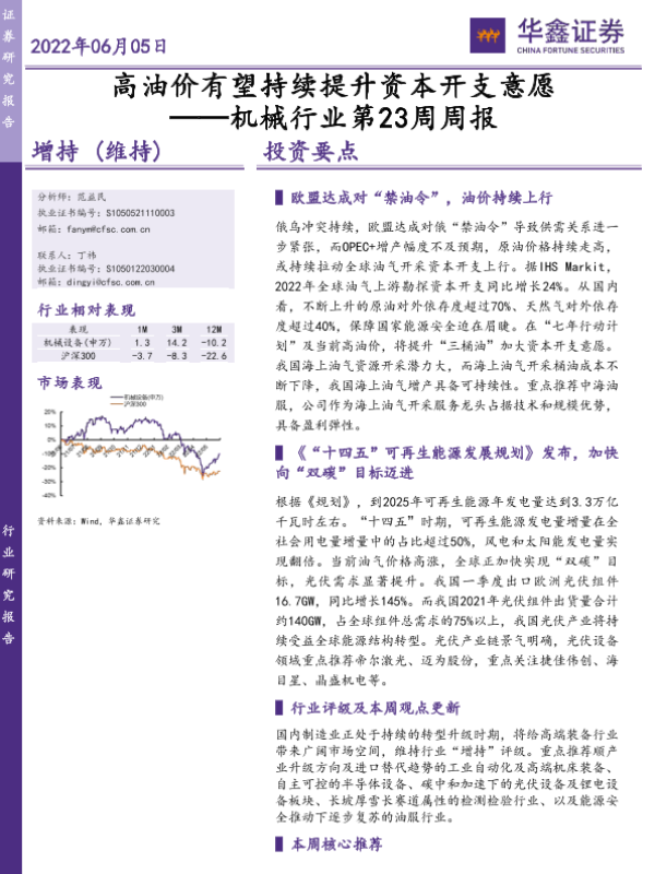 【华鑫证券】【20220605】机械行业第23周周报:高油价有望持续提升资本开支意愿-25页
