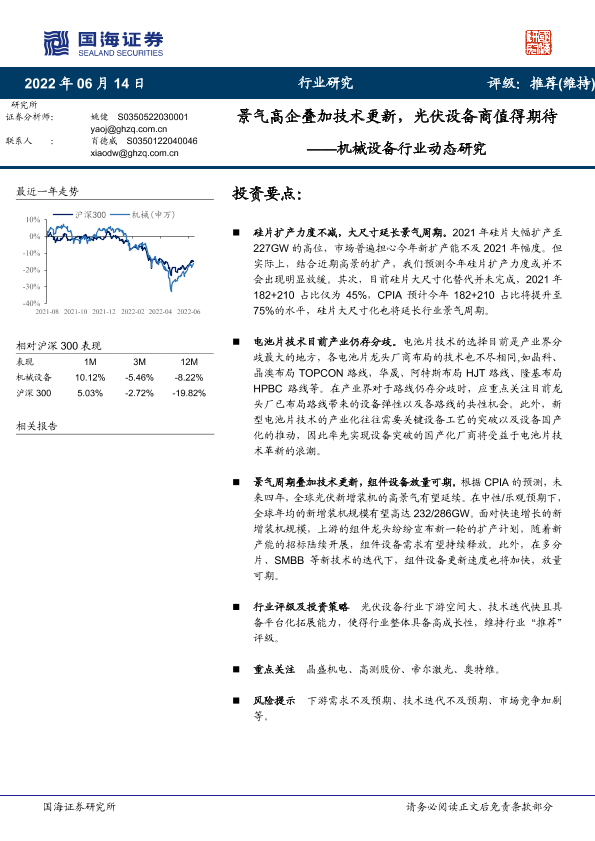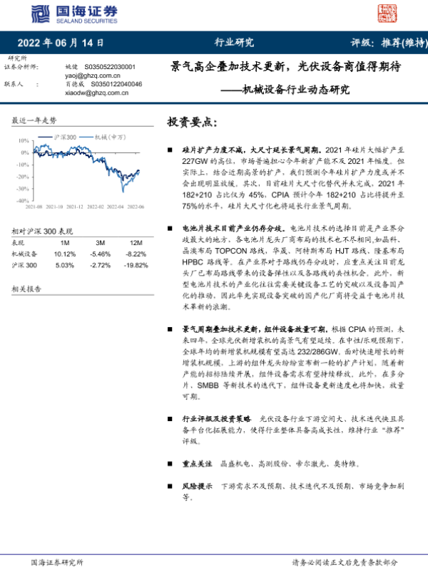 【国海证券】【20220614】景气高企叠加技术更新,光伏设备商值得期待——机械设备行业动态研究-4页