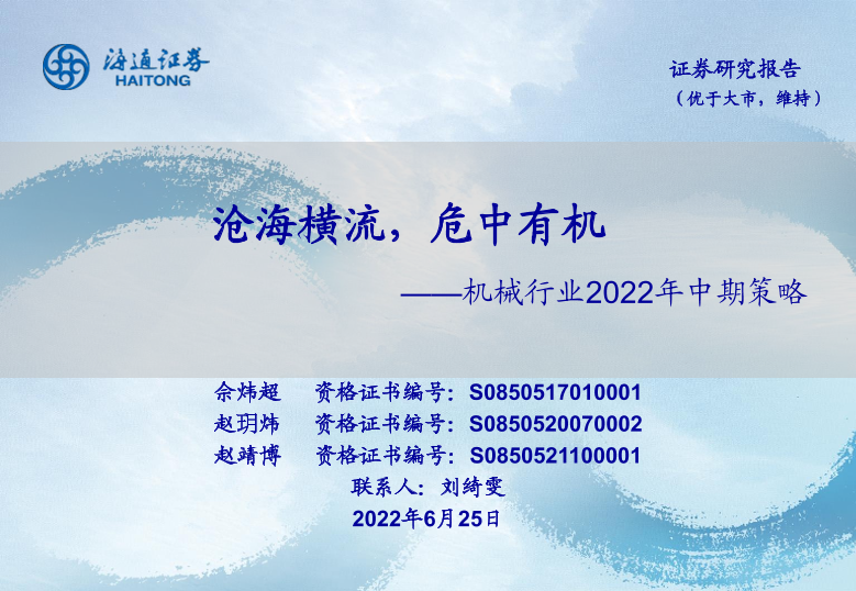 【海通证券】【20220625】机械行业2022年中期策略:沧海横流,危中有机-25页