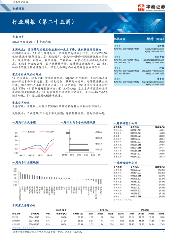 【华泰证券】【20220626】20220626-华泰证券-机械设备行业周报(第二十五周)-16页