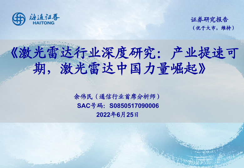 【海通证券】【20220625】激光雷达行业深度研究:产业提速可期,激光雷达中国力量崛起-57页