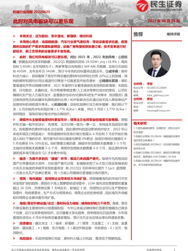 【民生证券】【20220625】机械行业周报:此时对风电板块可以更乐观-19页