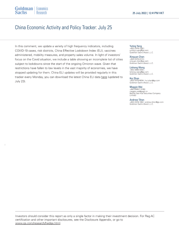 【Goldman Sachs】【20220725】China Economic Activity and Policy Tracker July 25-7页