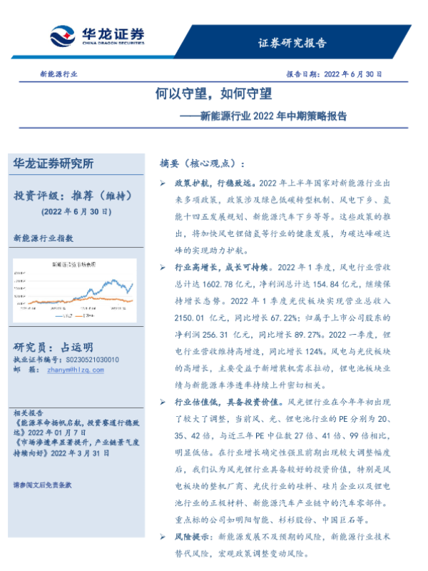 投资价值 政策分析 新能源 行业增长 风险提示