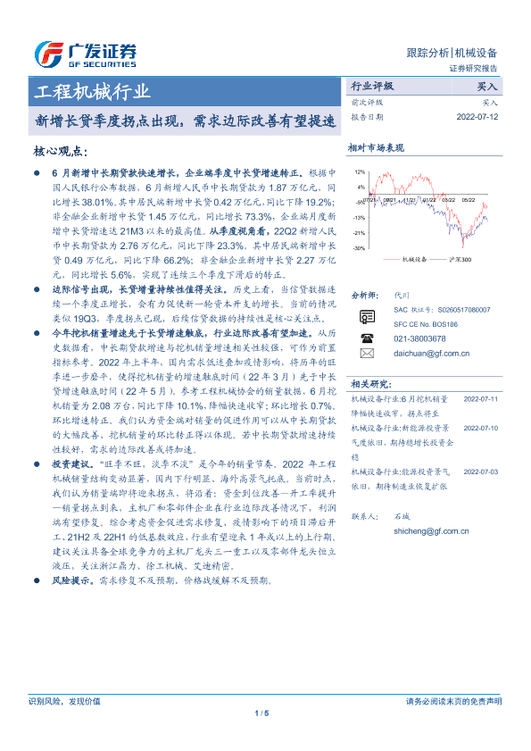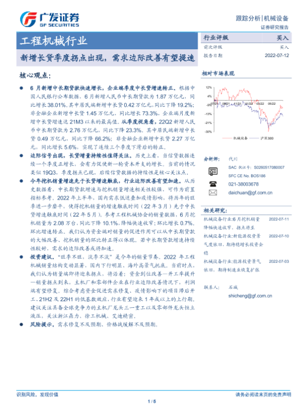【广发证券】【20220712】20220712-广发证券-工程机械行业:新增长贷季度拐点出现,需求边际改善有望提速-5页