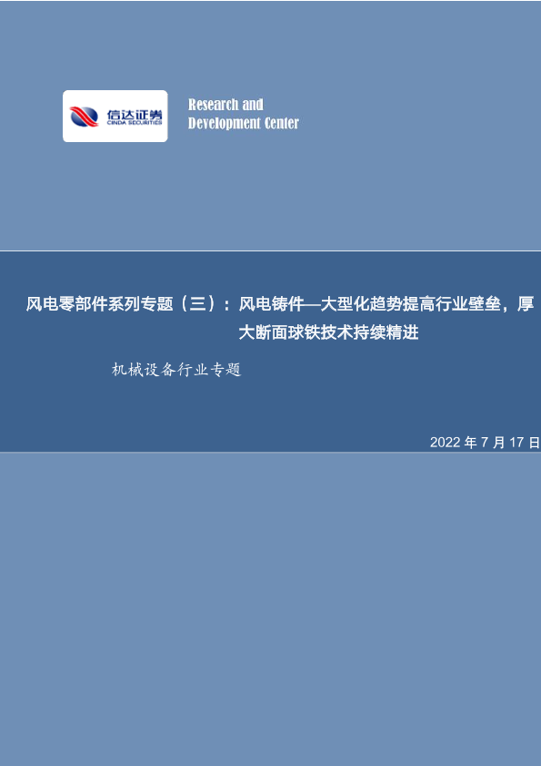 【信达证券】【20220717】风电零部件系列专题(三):风电铸件—大型化趋势提高行业壁垒,厚大断面球铁技术持续精进-17页