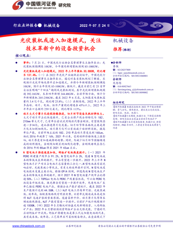 【银河证券】【20220724】光伏装机或进入加速模式,关注技术革新中的设备投资机会-3页