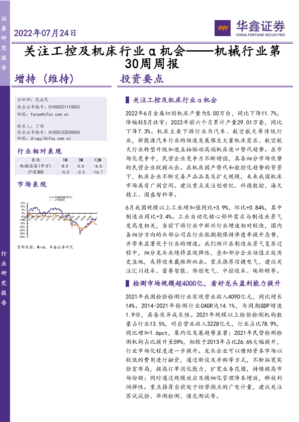 【华鑫证券】【20220724】机械行业第30周周报:关注工控及机床行业α机会-25页