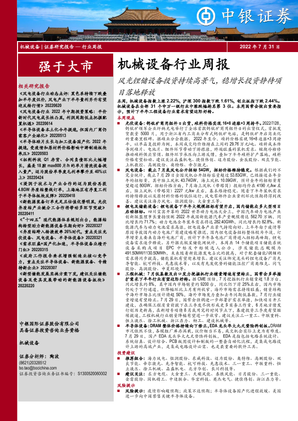 【中银证券】【20220731】20220731-中银证券-机械设备行业周报:风光锂储设备投资持续高景气,稳增长投资静待项目落地释放-15页