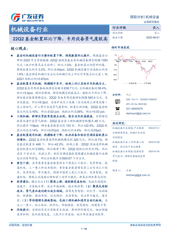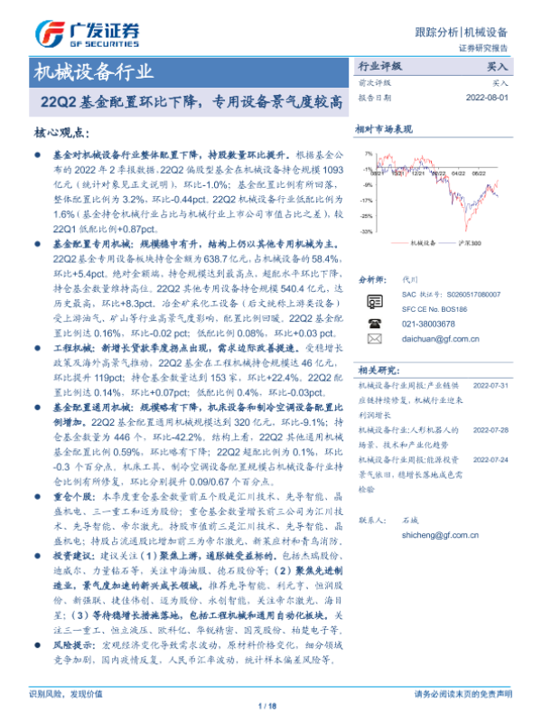 【广发证券】【20220801】22Q2基金配置环比下降,专用设备景气度较高-18页